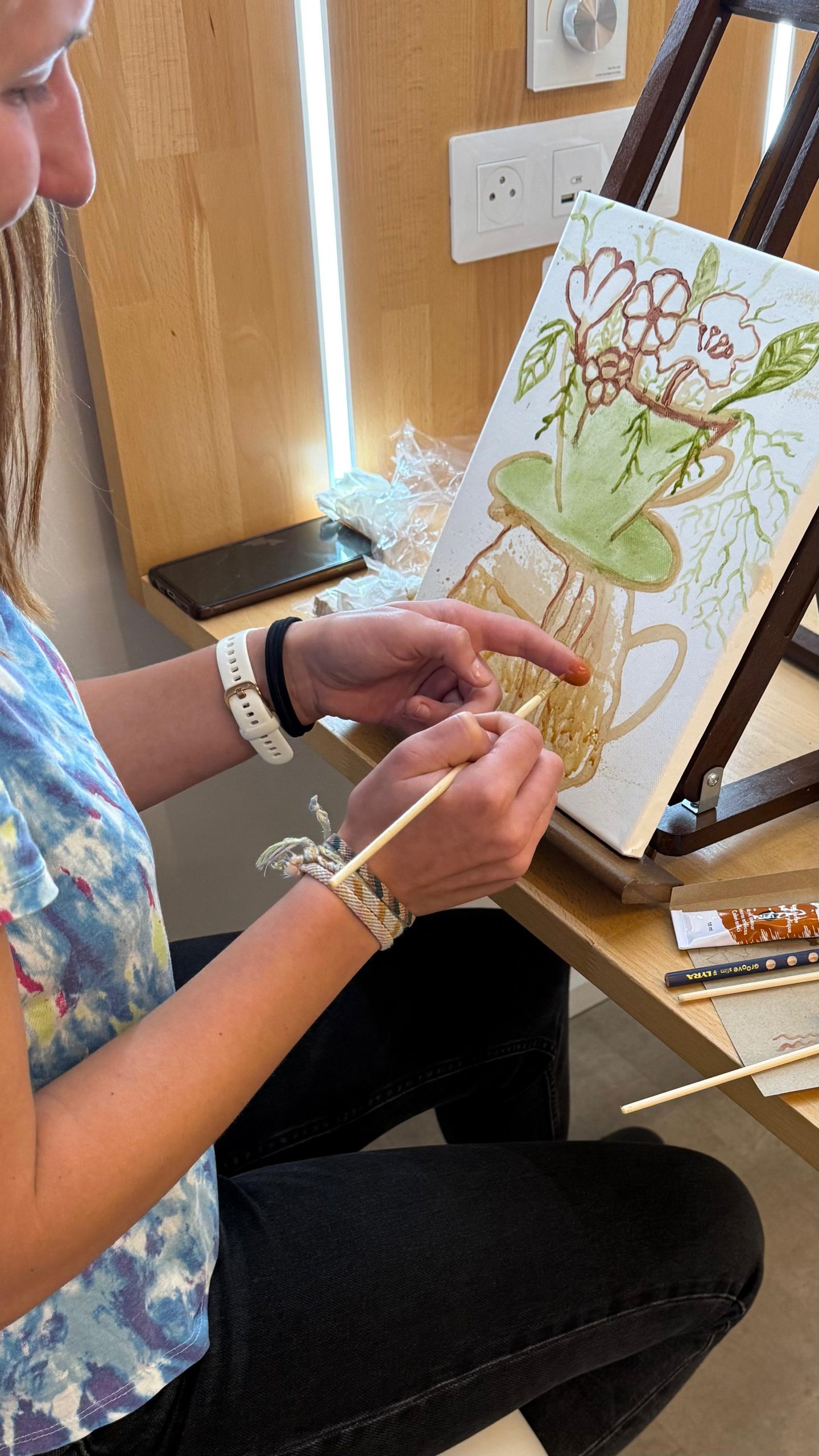 Z kurzu si odnesete jeden vámi malovaný obraz, nové informace o kávě a její chuti a přípravy, fotografie z kurzu a krásný pocit z nový zážitků.